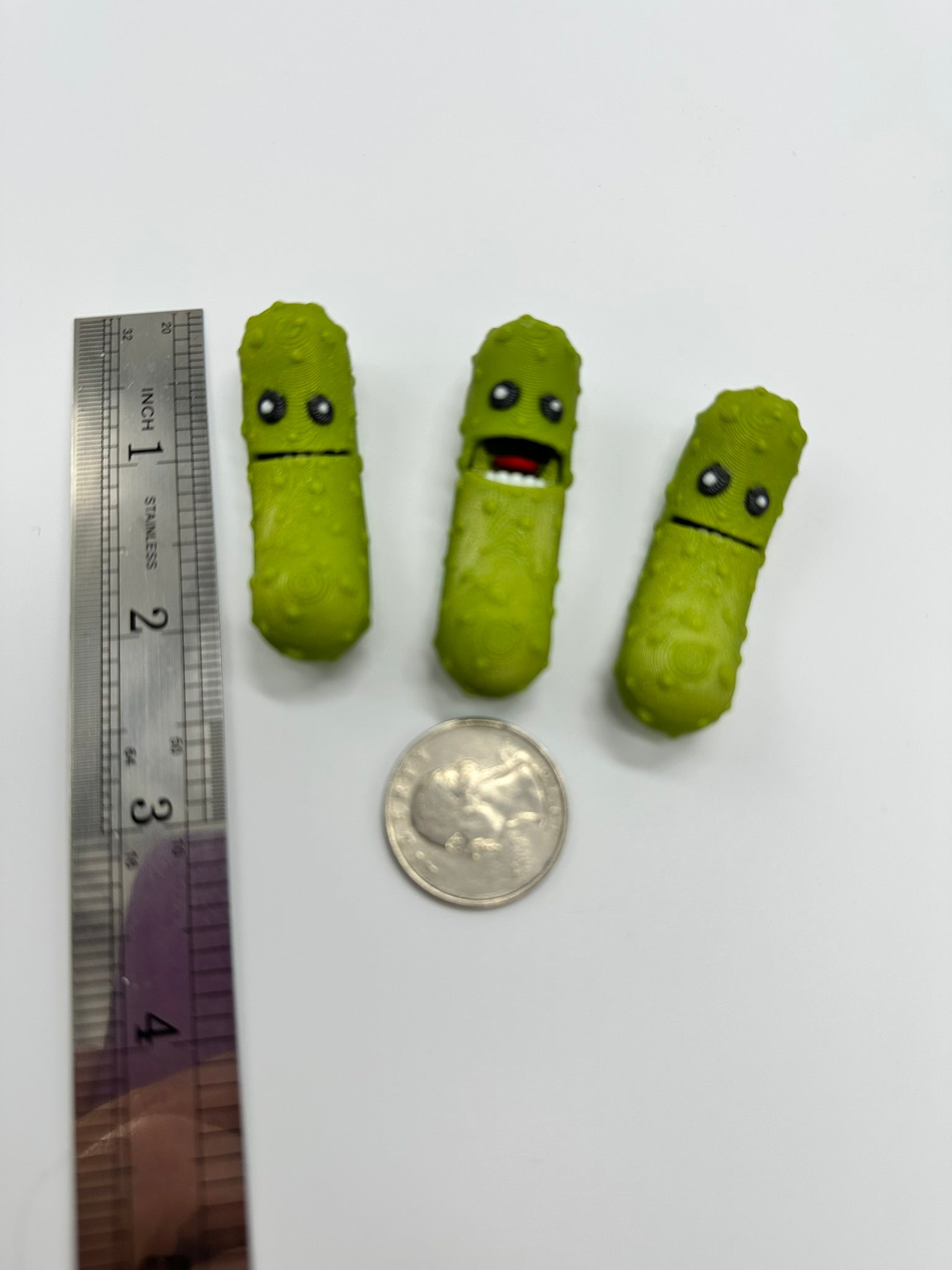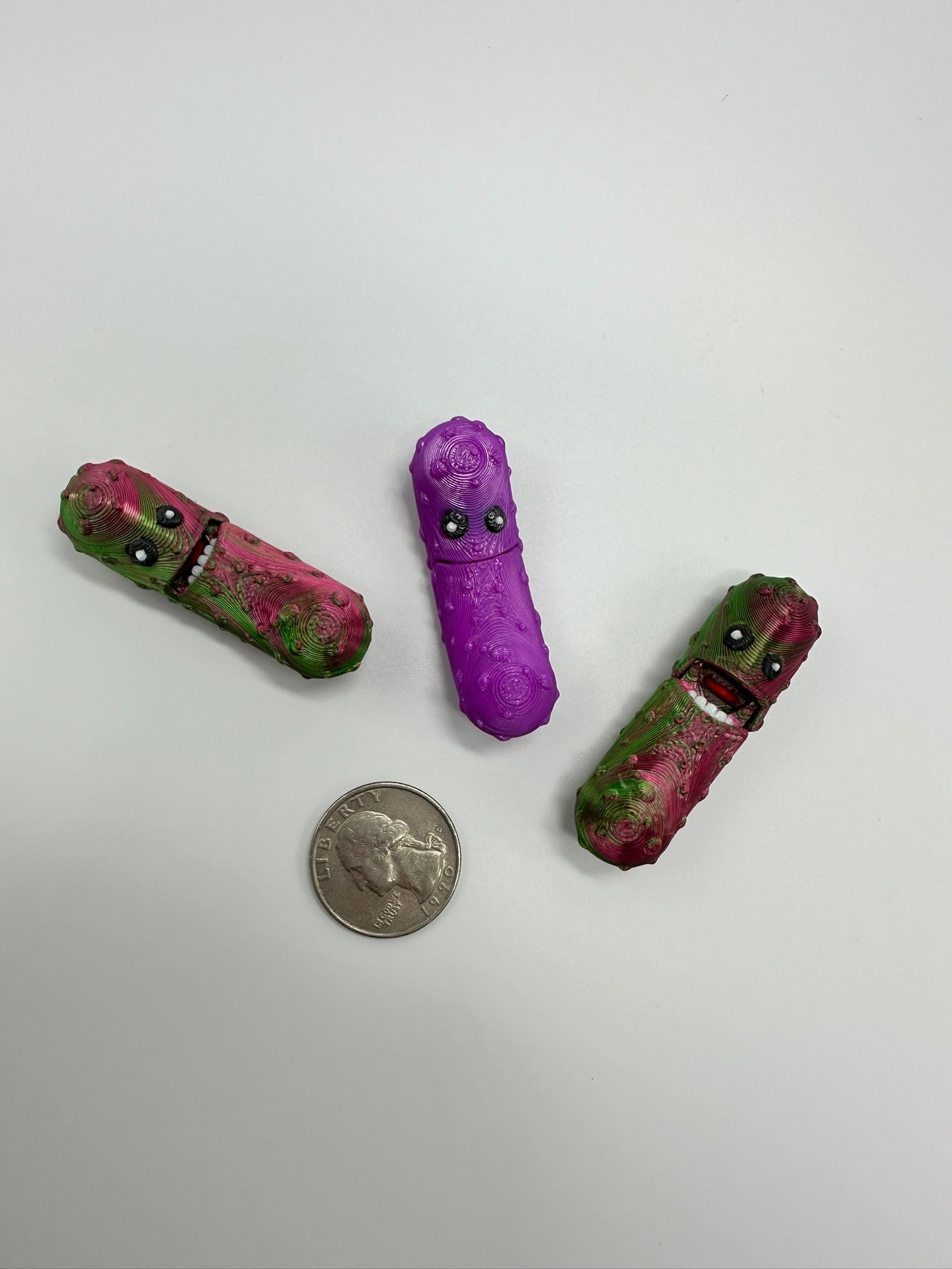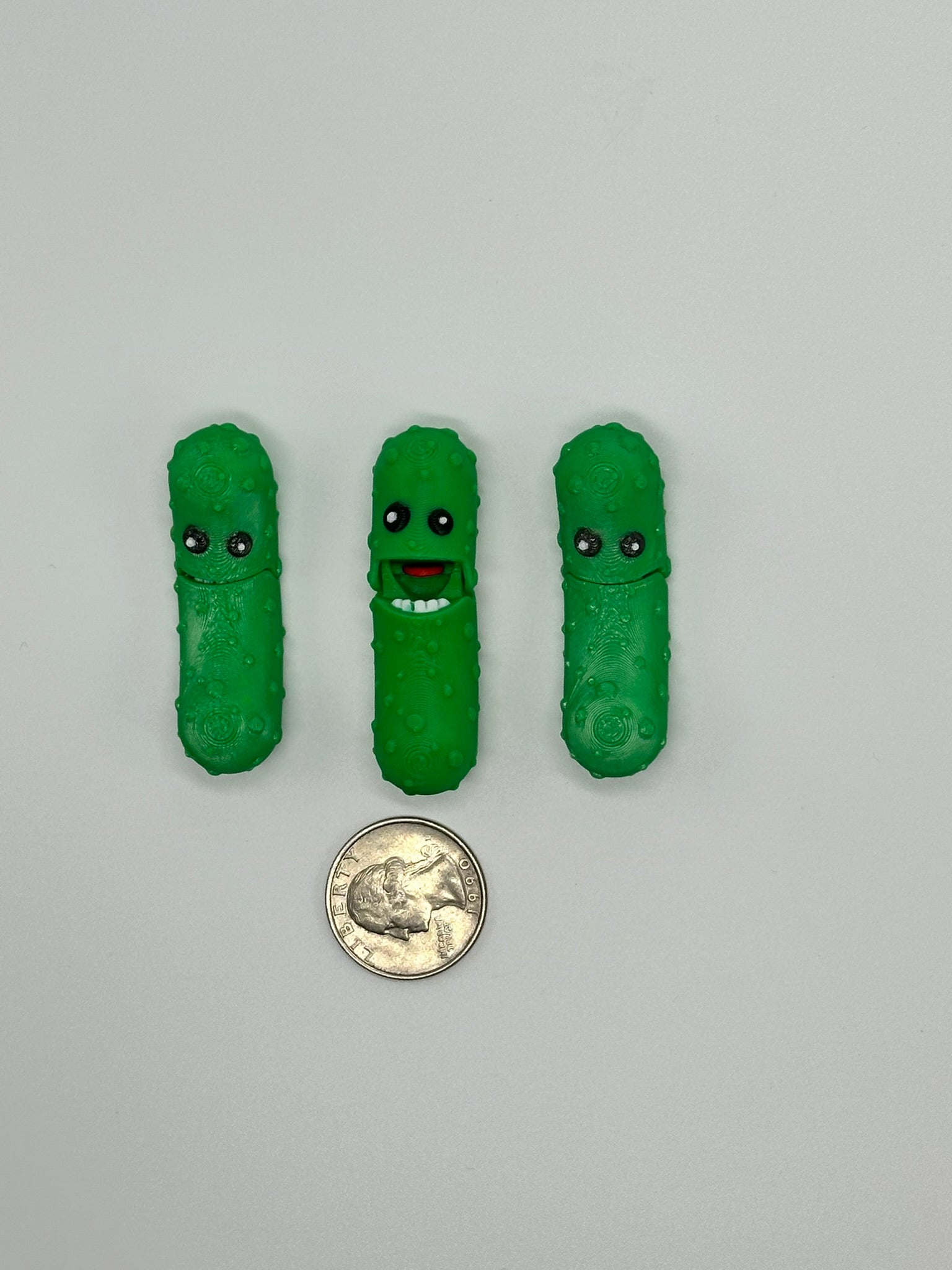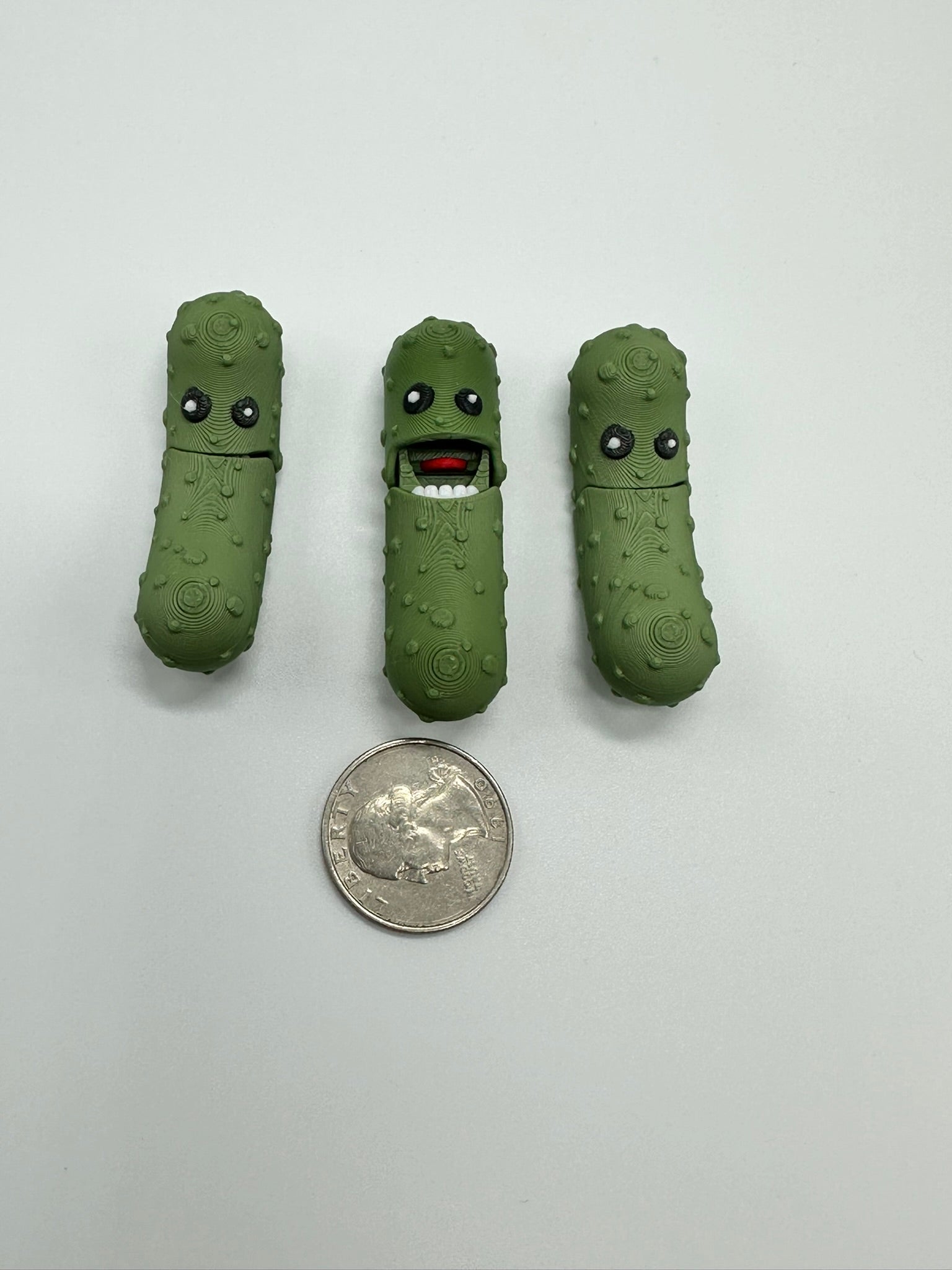 You really need a pickle pal. Actually you need a bunch of them because everyone will want one. Pickle Pals can open and close their mouths so your pickle friends can talk to you. High quality, pla bioplastic, order by the dozen. Random color assortment. All guaranteed to make to smile. Great fidget, desk toy, conversation starter. *Small parts, not recommended for children under 4.