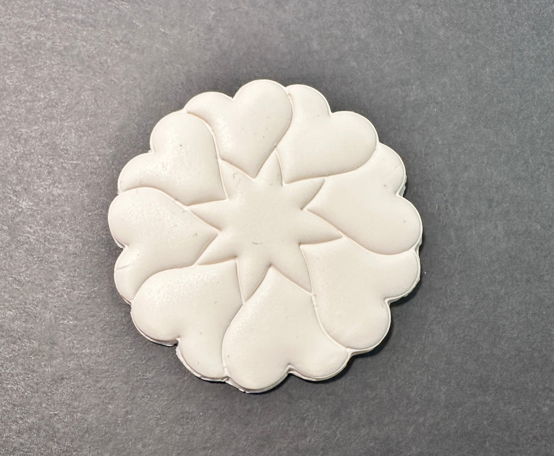 Ring of Hearts Cutter for clay, fondant, or cut out cookies. Available in small 2" diameter, medium 2.5" diameter, large 3" diameter. Not dishwasher safe, handwash only.